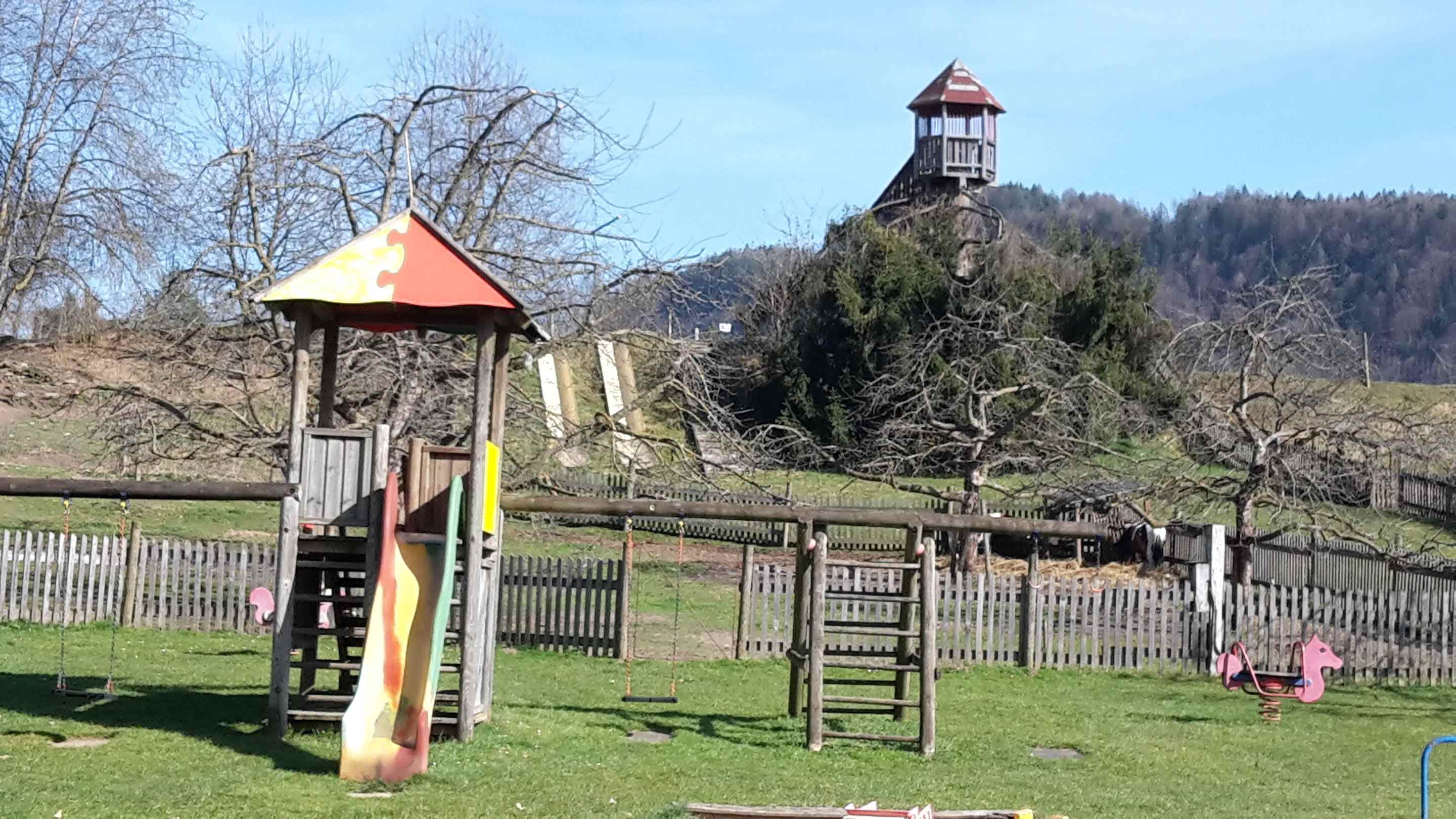 Spielplatz mit Spielwiese, Tierweide
