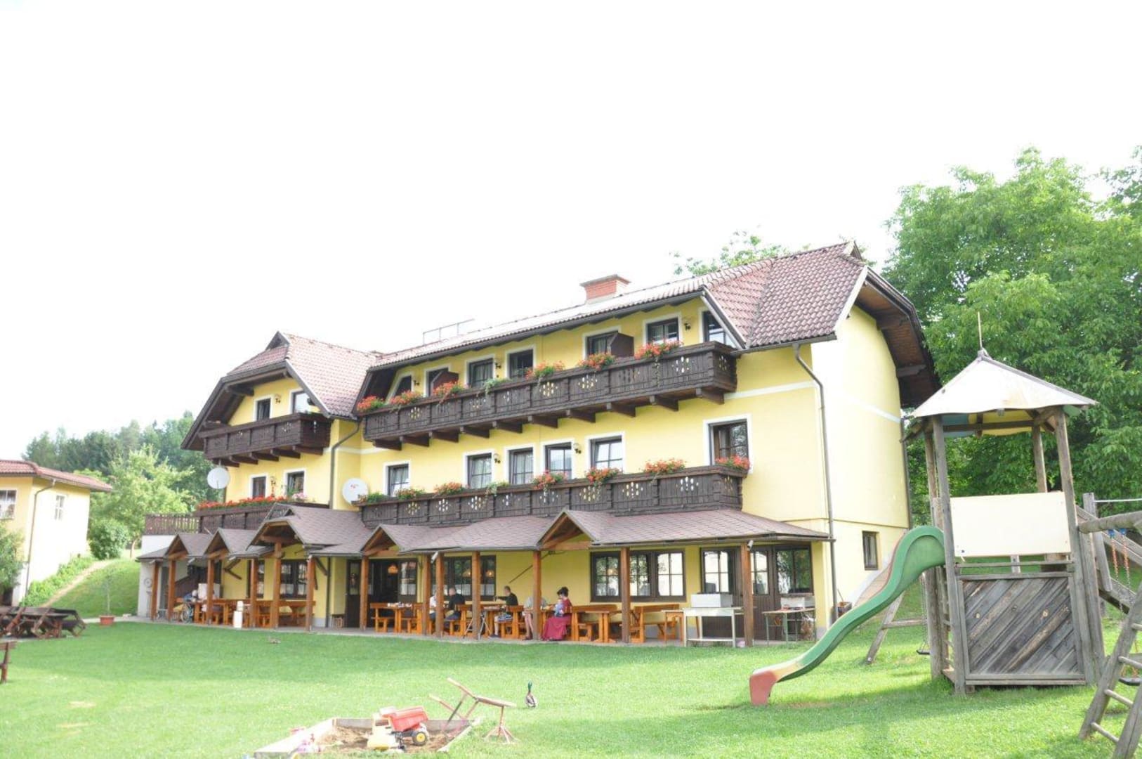 Hier ist im EG der Buschenschank (hier wird auch das Frühstück serviert) und im obersten Geschoß befindet sich die Wohnung Seeblick.