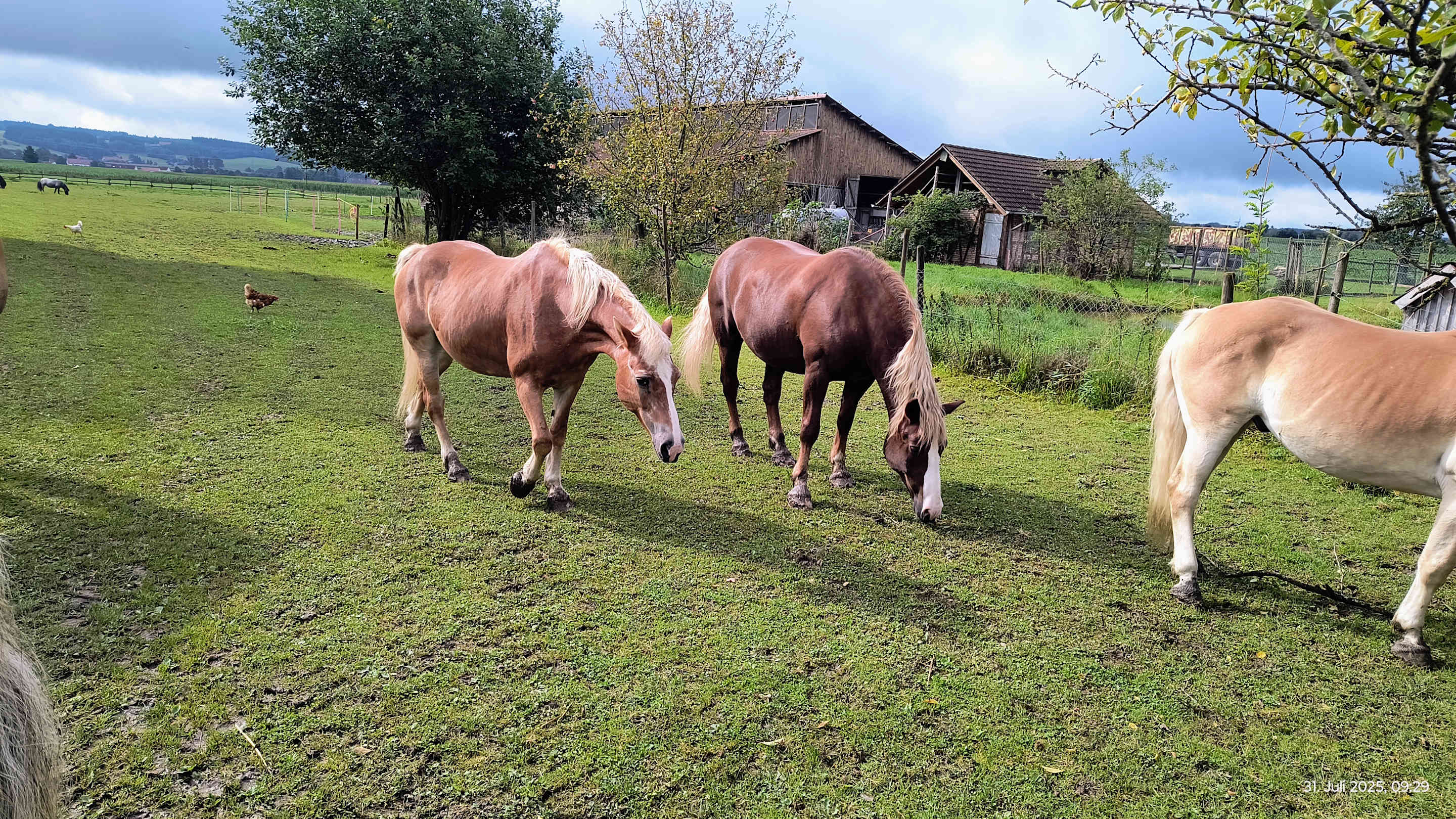Blick von der Koppel auf die Reithalle