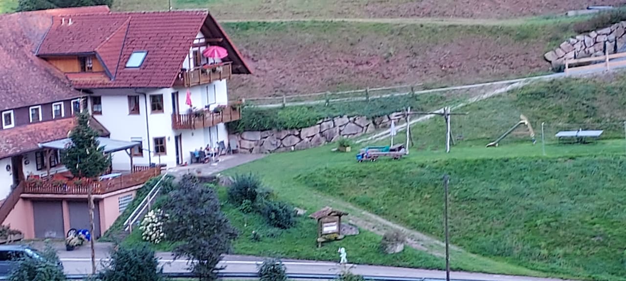 Blick auf Ferien - und Wohngebäude und Spielplatz