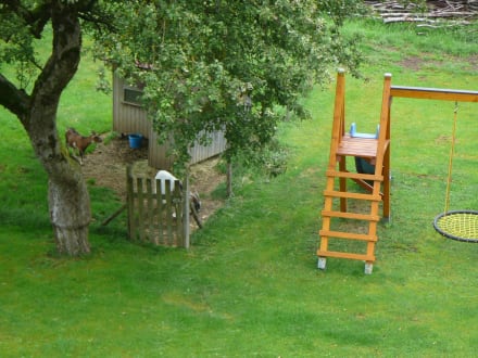 Ziegenstall und Kinderspielplatz
