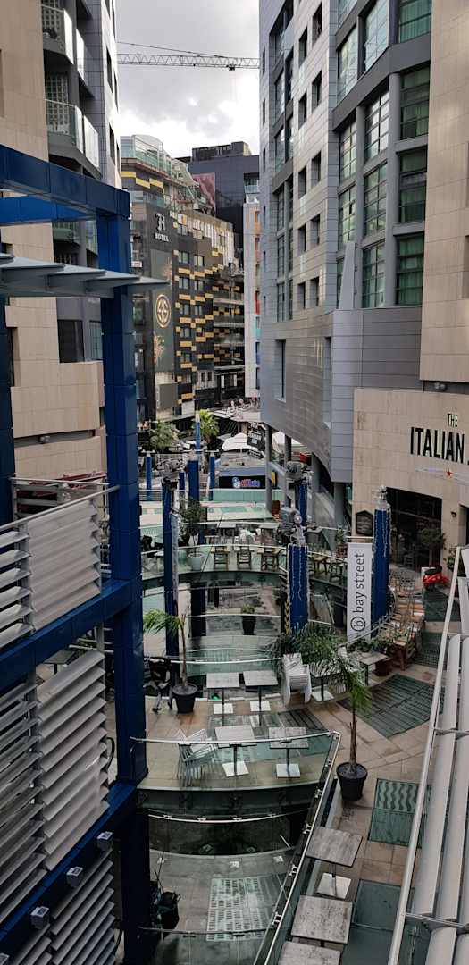 Das Einkaufszentrum von oben. Blick vom Frühstücksrestaurant