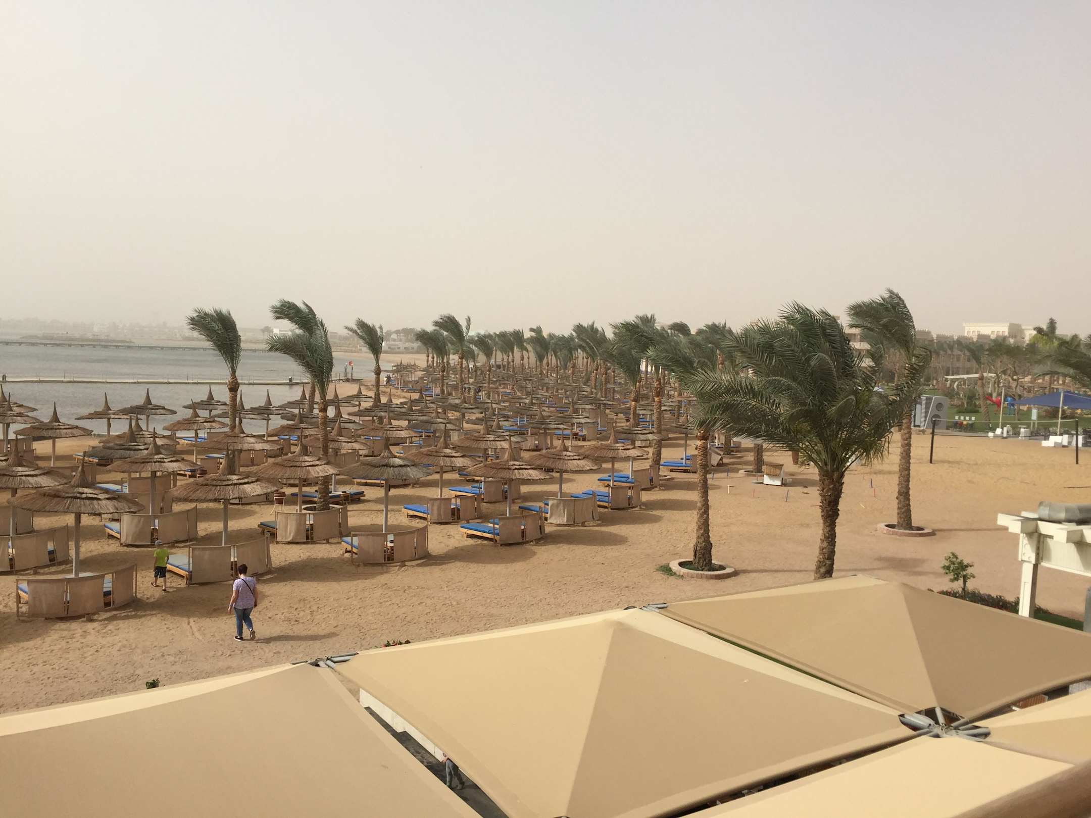 Blick vom Zimmer zum Palace Strand Sandsturm