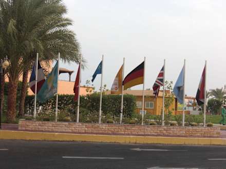 Fahnen vor der Hotel-Lobby