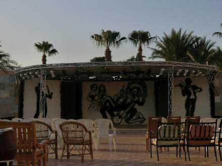Hier die Bühne, auf der abends das Programm für die Kinder ablief.
