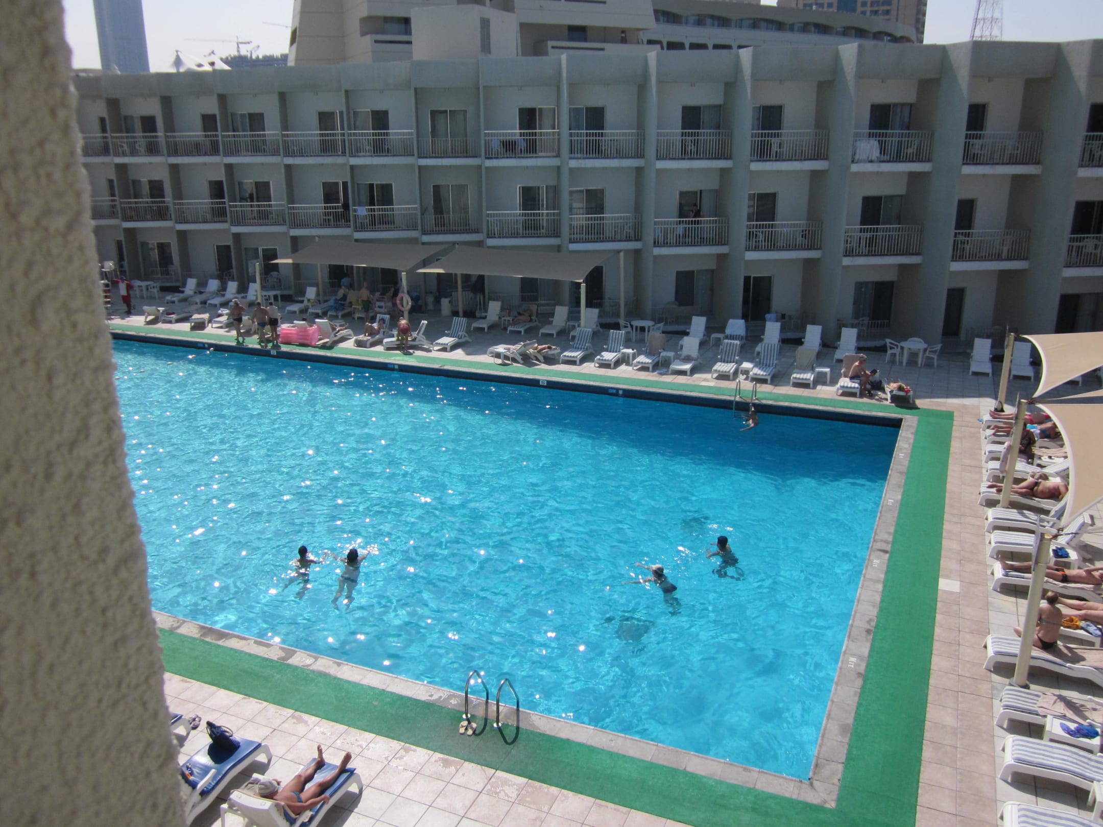 Blick vom Balkon zum Pool