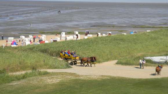 Rückkehr der Pferdekutschen von der Insel Neuwerk