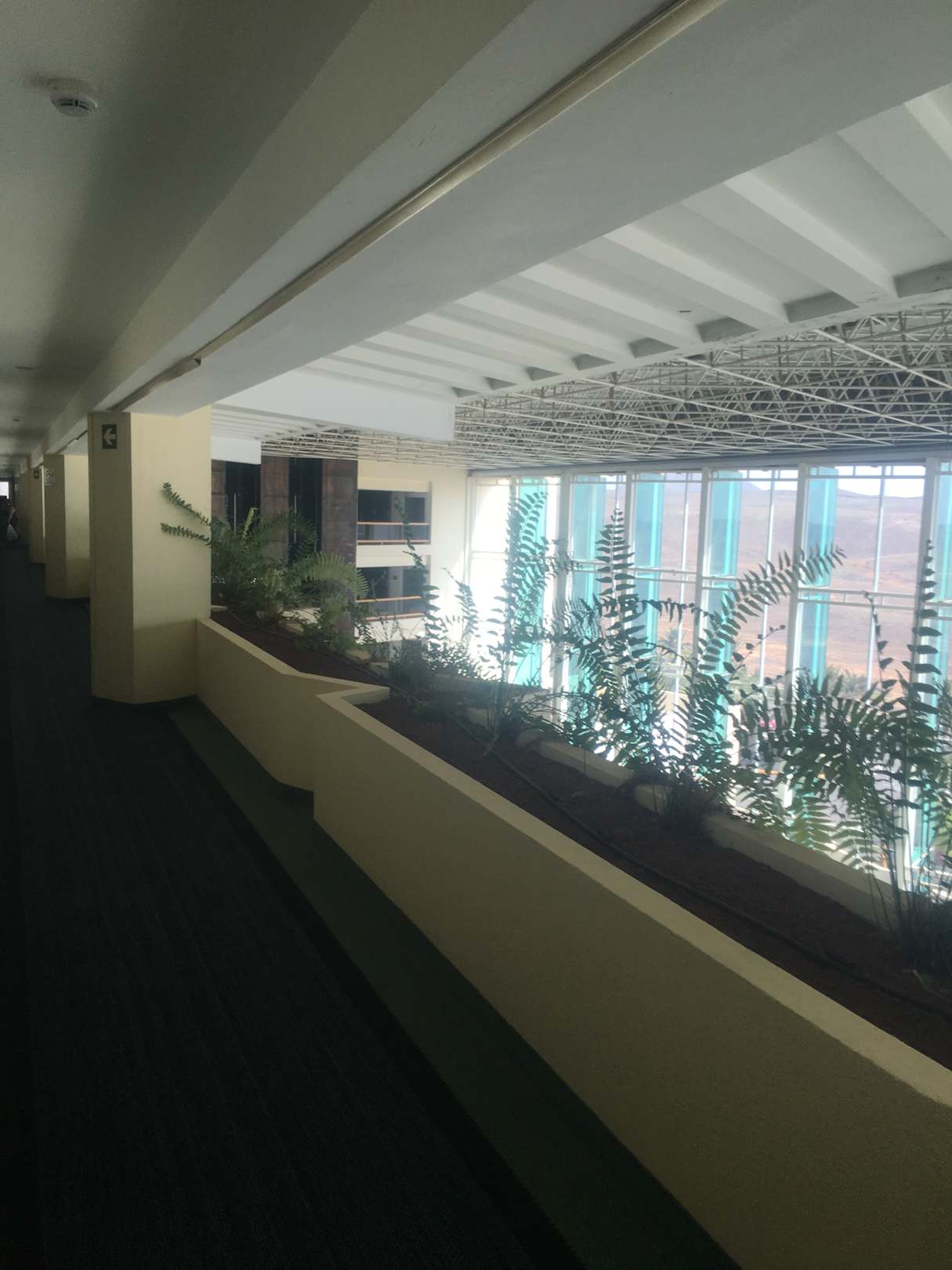 Gang zu den Zimmern Kabelführung kommt von der Decke im ganzen kompletten Gang