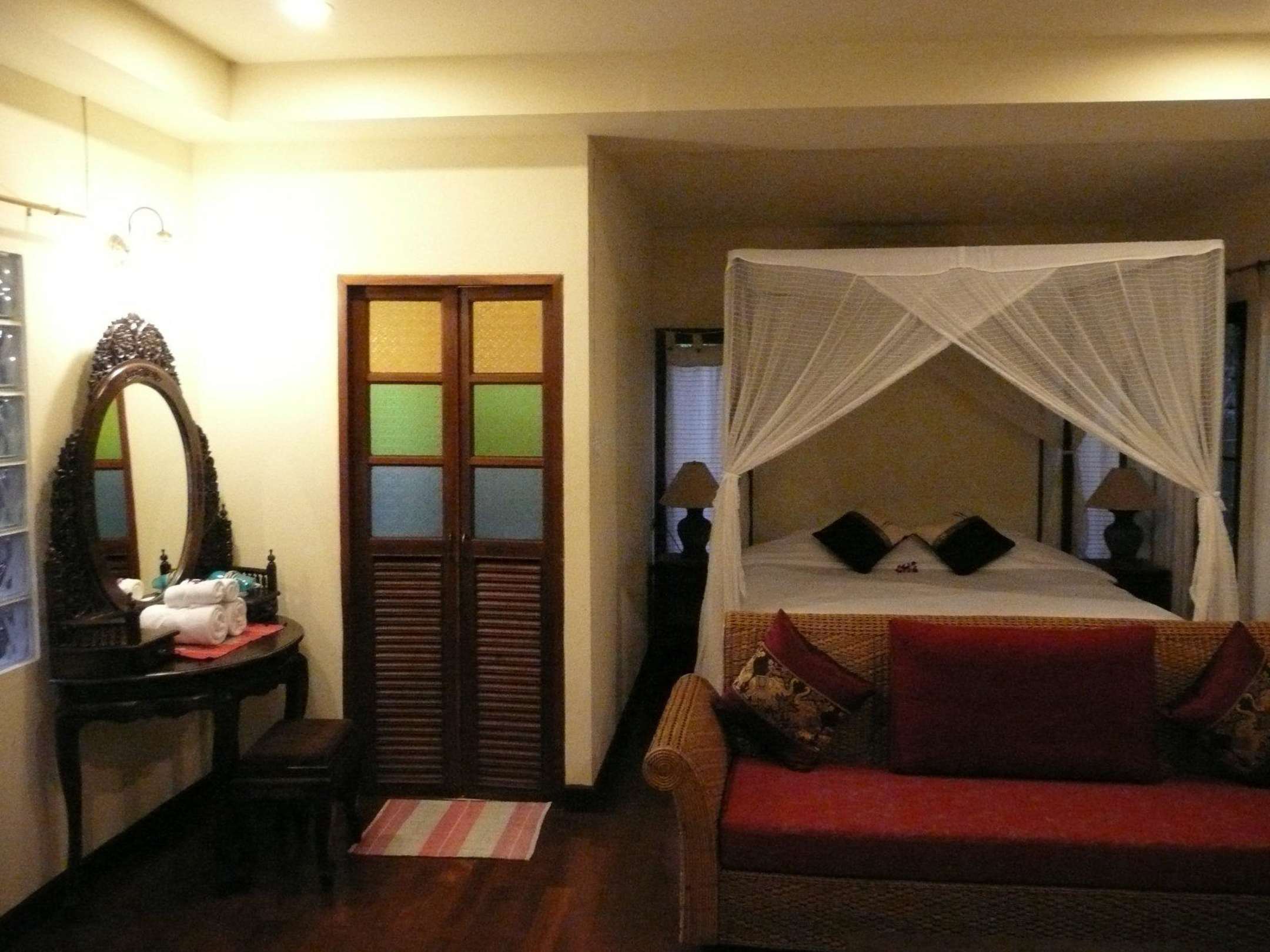 Unser schönes Zimmer mit Himmelbett und Moskitonetz