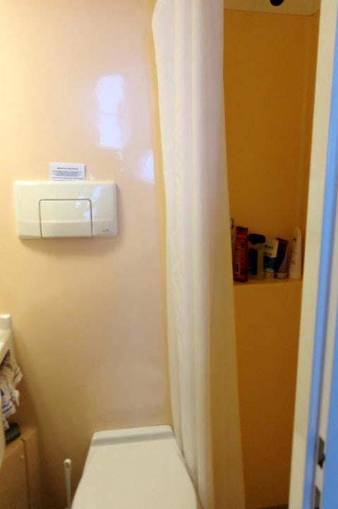 Diese Nasszelle steht stellvertretend für wahrscheinlich einen großen Teil der Zimmer in diesem Hotel. Zumindest haben alle 42 Reisenden unserer Gruppe in ihren Zimmern ähnliche Nasszellen vorgefunden.