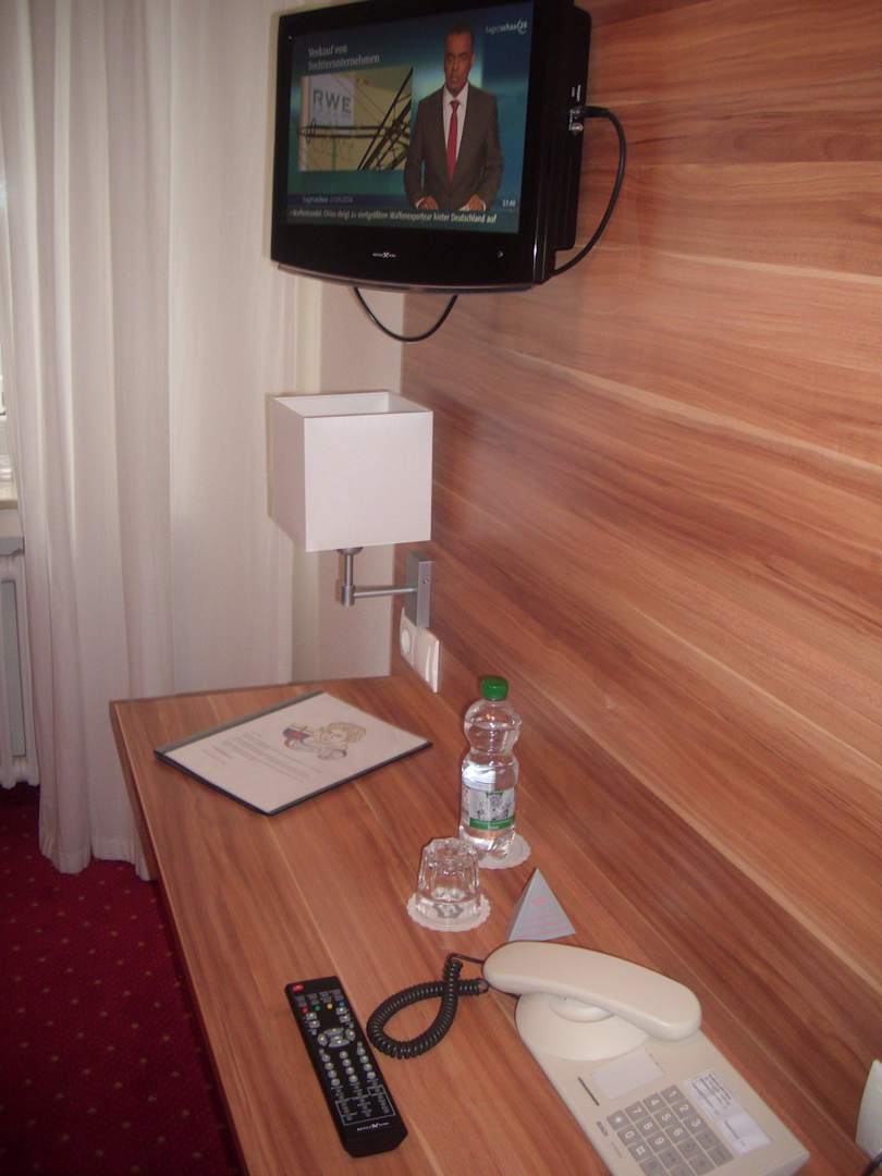 Schreibtisch. Als Sitzgelegenheit war nur ein Hocker ohne Rückenlehne im Zimmer. Ein "einfacher" Stuhl wäre mir persönlich lieber gewesen.