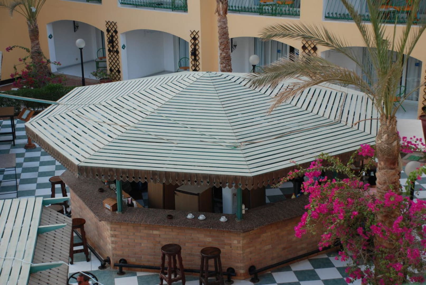 Ausblick vom Balkon auf die Poolbar