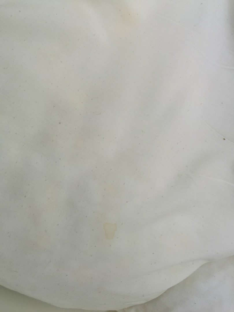 Das Kopfkissen , weiß und gelb . Pfui deifel.