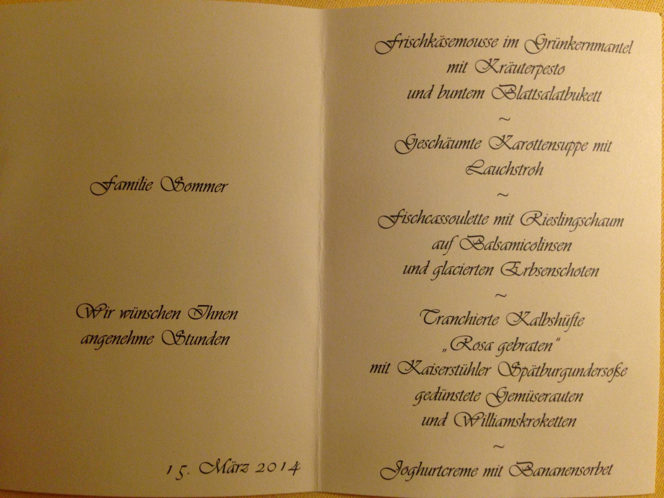 Einblick auf ein 4 Gang Menü, Gruß an die Küche