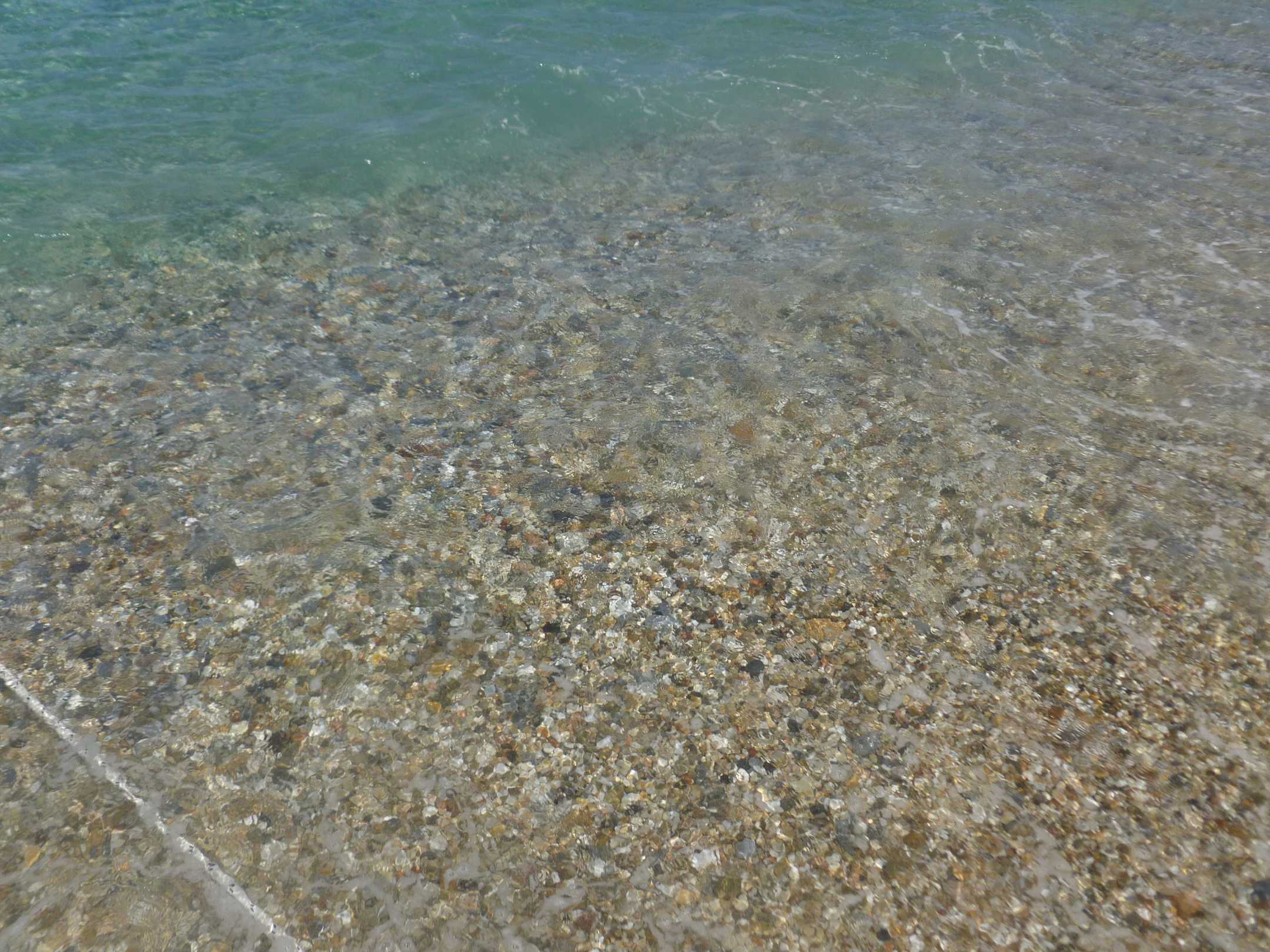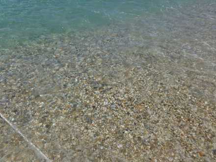 StrandUm ins Meer zu gelangen, muss man zunächst über den groben Kies laufen, was sehr schwierig ist, da man bis zum Knie im Kies versinkt!