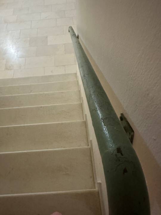 Treppe mit vergammeltem Geländer von der Abend Bar in den Keller zu den Toiletten!!