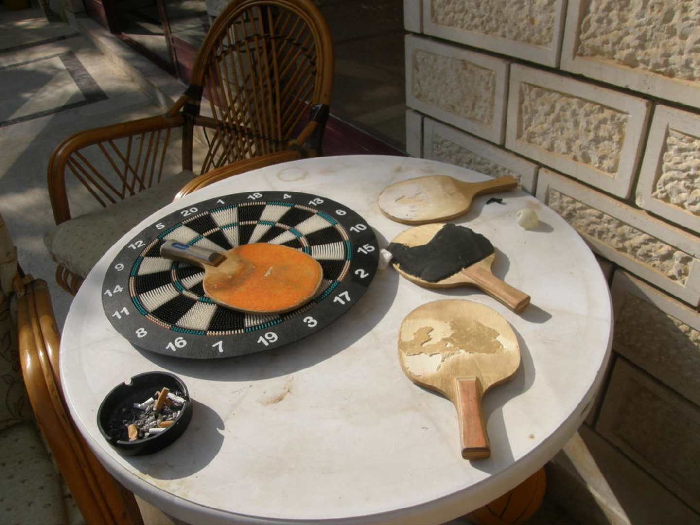 W katalogu Itaki była informacja, że hotel dysponuje stołem do ping ponga i rzutkami, na zdjęciu widać jak jest w realu, tarcza leży na stole, rzutek brak, a rakiety do pingponga wyglądają tak jak i sam stół. Śmiech na sali!!!!