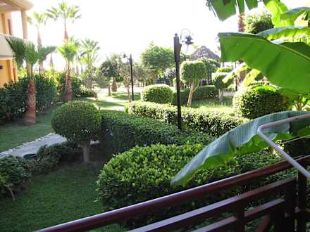 Blick vom Bungalow in den Garten