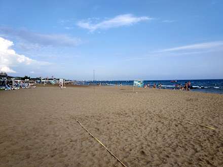 Breiter Strand leider ein paar Felsen im Wasser