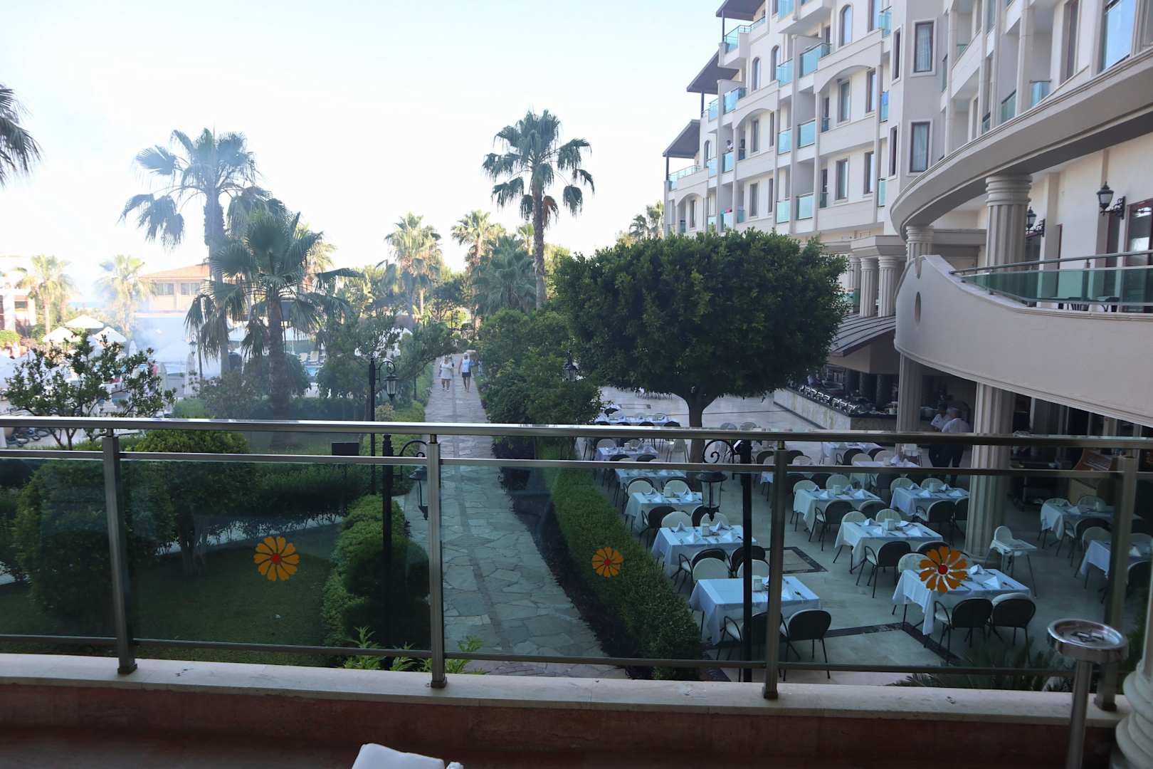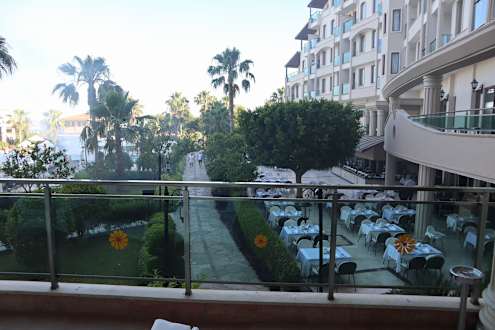 Lobby Terrasse blick auf den Pool , weg zum Strand und Restaurant