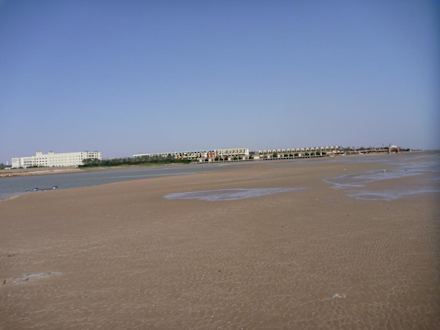 Blick vom Strand auf die Anlage