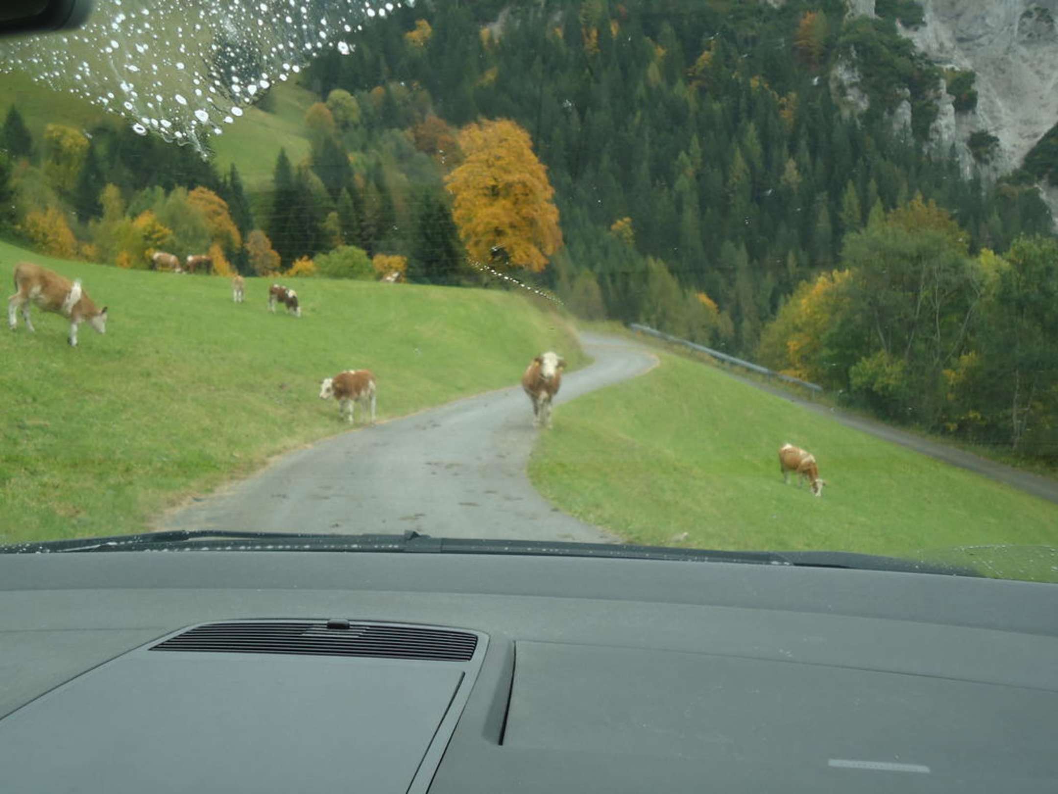 Beim runterfahren trifft man auch auf Kühe