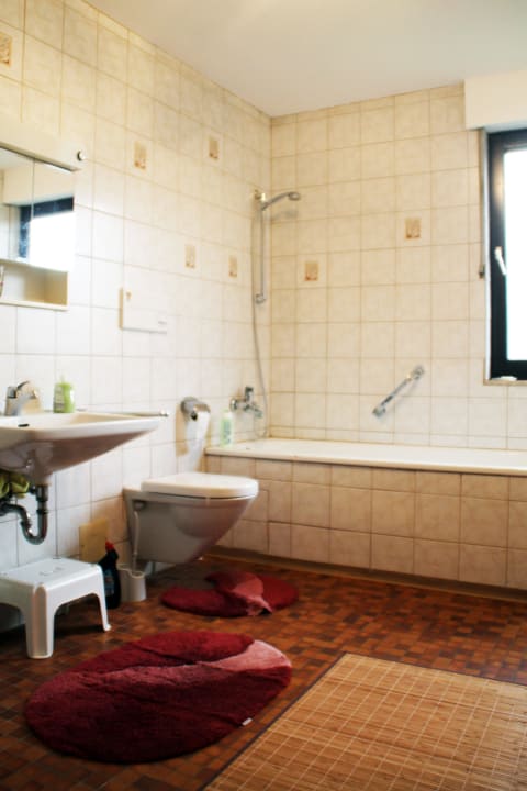 Großes, helles Badezimmer mit Badewanne