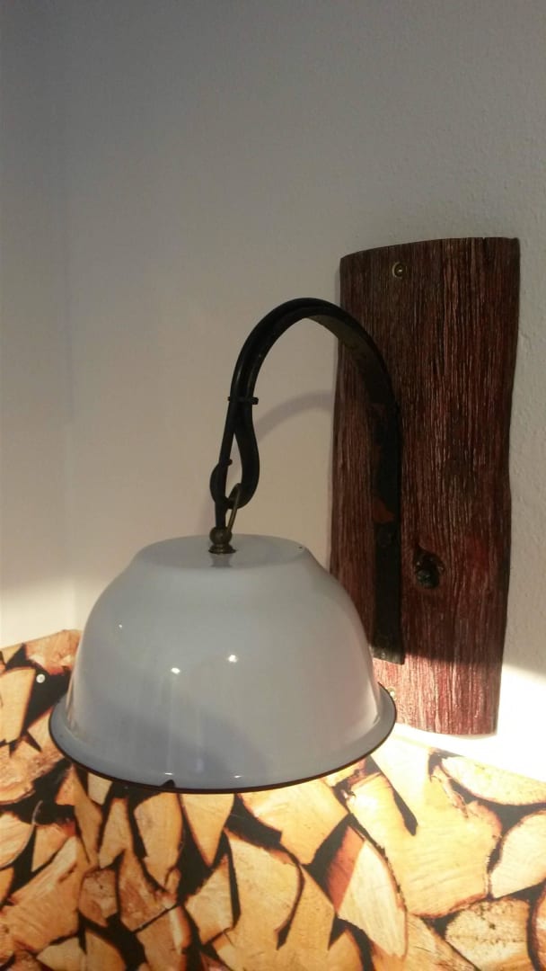 Emailletopf als Lampenschirm