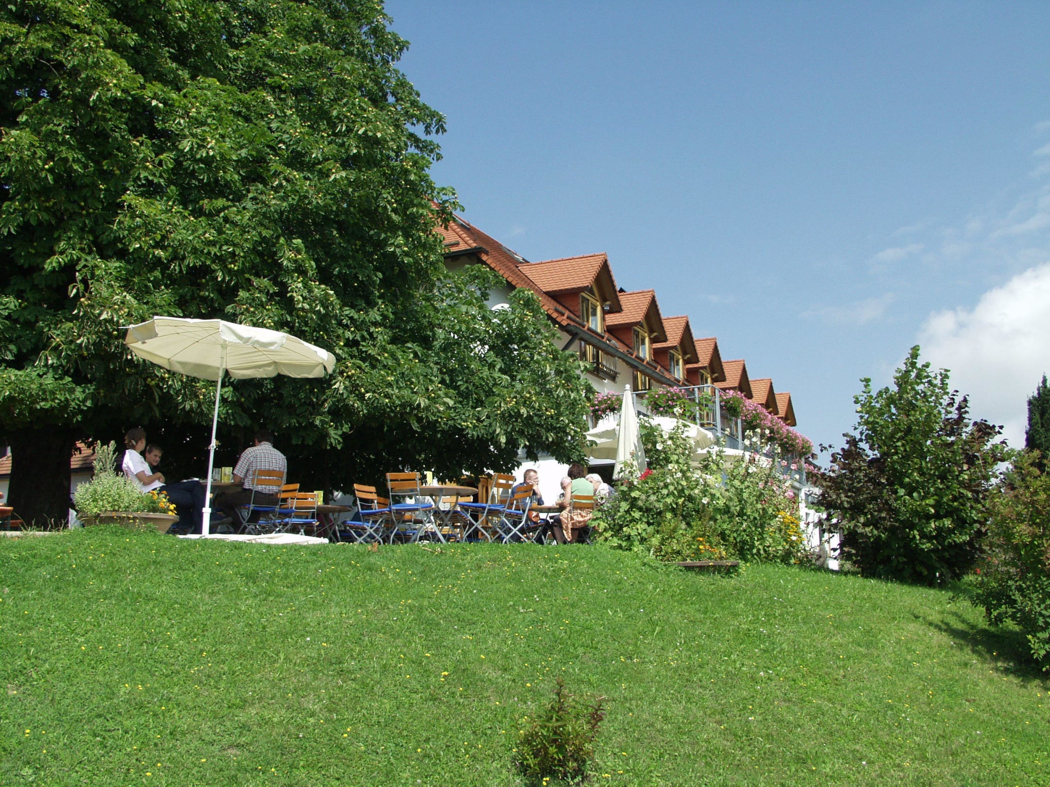 Außenansicht mit Biergarten