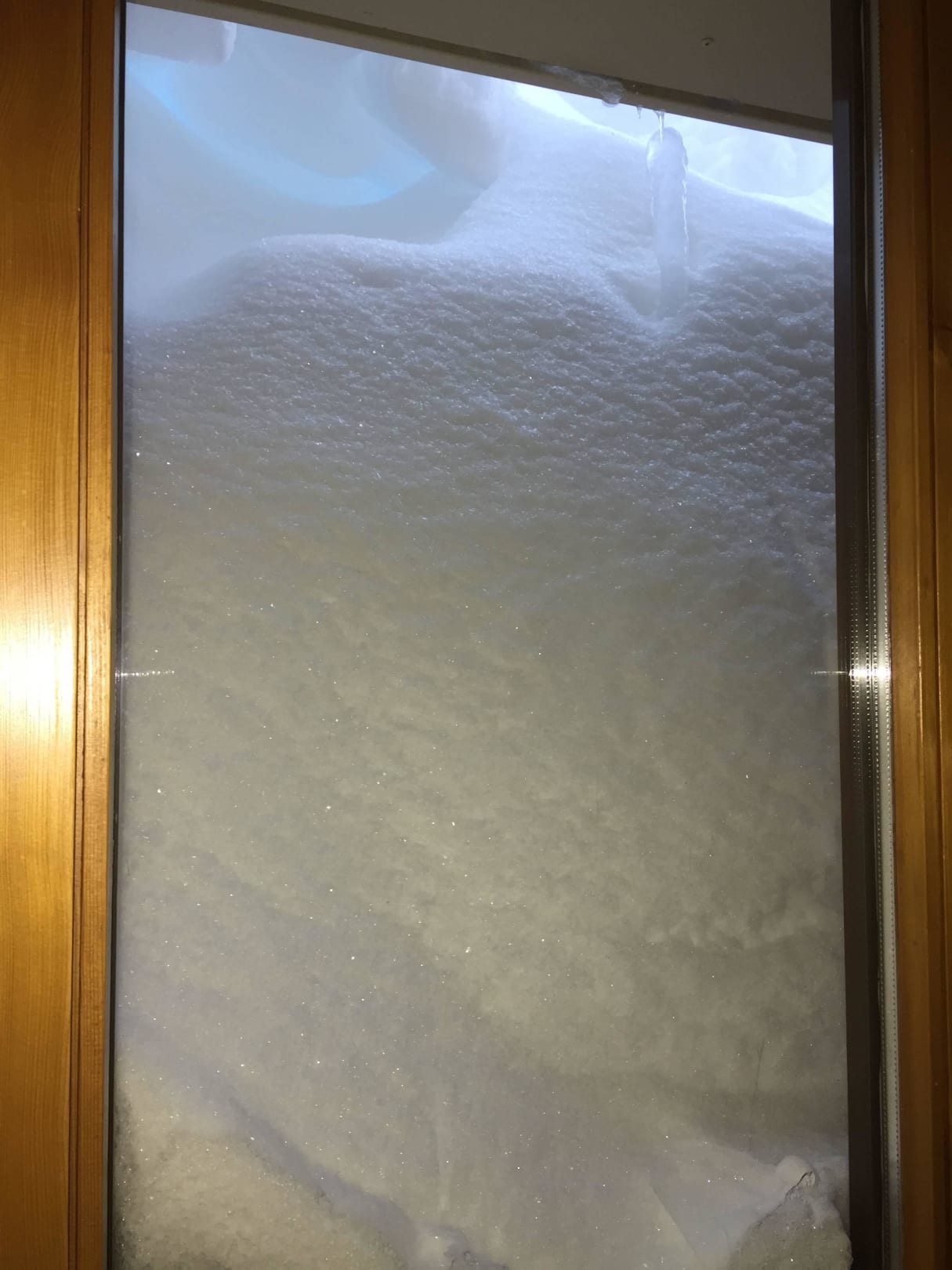 Tief verschneites Zimmerfenster