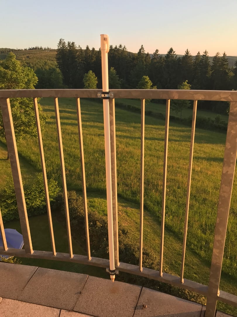 ZimmerDie Sonnenschirmständer ohne Funktion auf den Balkonen. Wäre schön, wenn es einen Sonnenschutz geben würde. Die Sonne brennt!