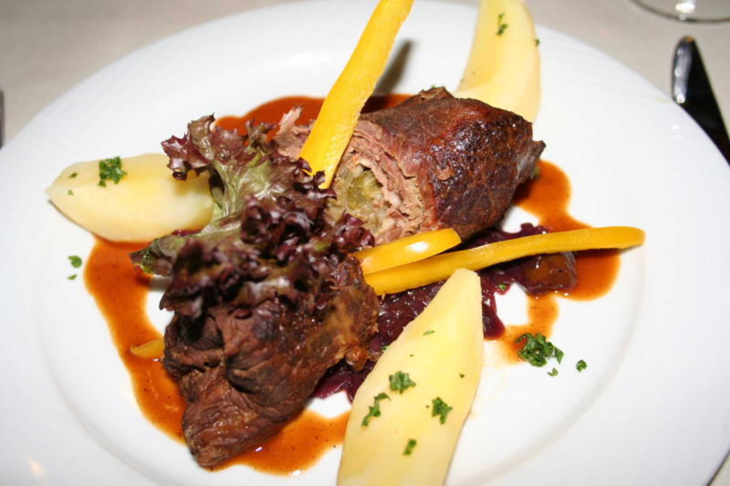 Rinderrolade Hausfrauenart in Zweigelt-Senfsauce