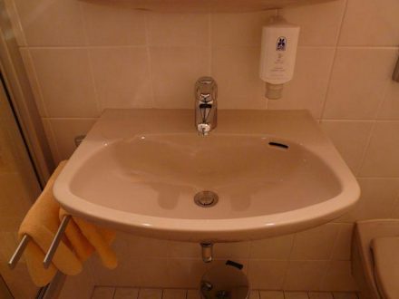 Sink in the bathroom of Berghotel Wilhelmsburg
