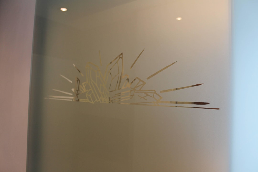 Dekorative Badtüre mit Hotellogo