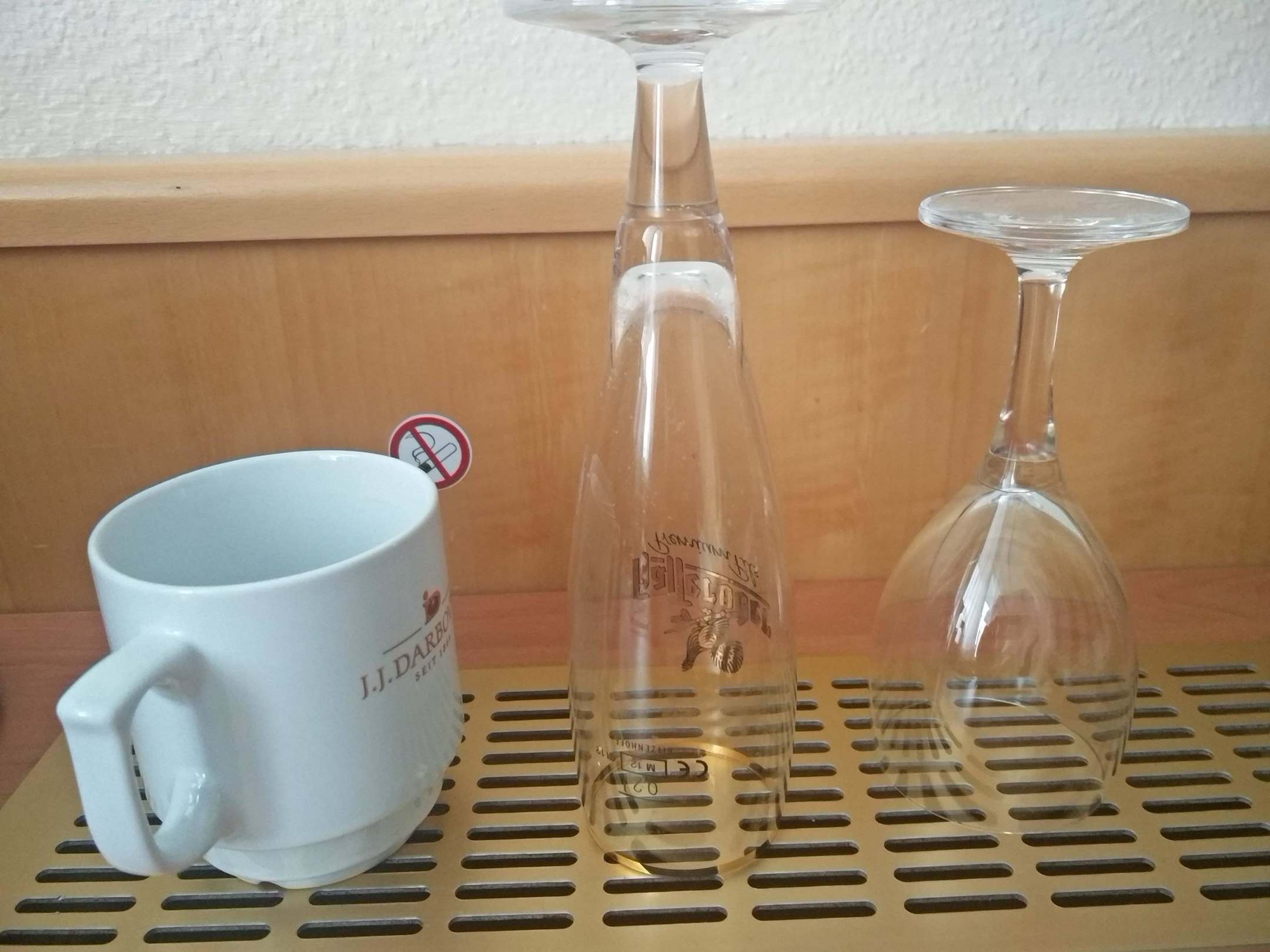 Dreckiges Geschirr über Kühlschrank-Abzug!Das muss man sich mal überlegen: Da wird das dreckige Geschirr auf die Kühlschrankabdeckung gestellt.