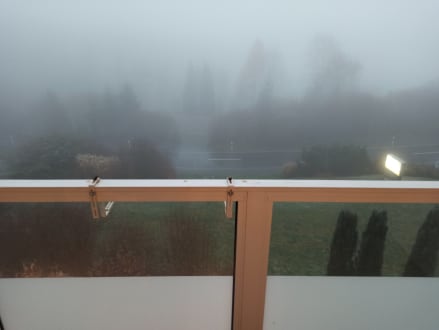Blick vom Balkon im Nebel