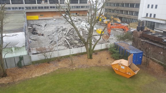 Hotelgarten mit Müllcontainer