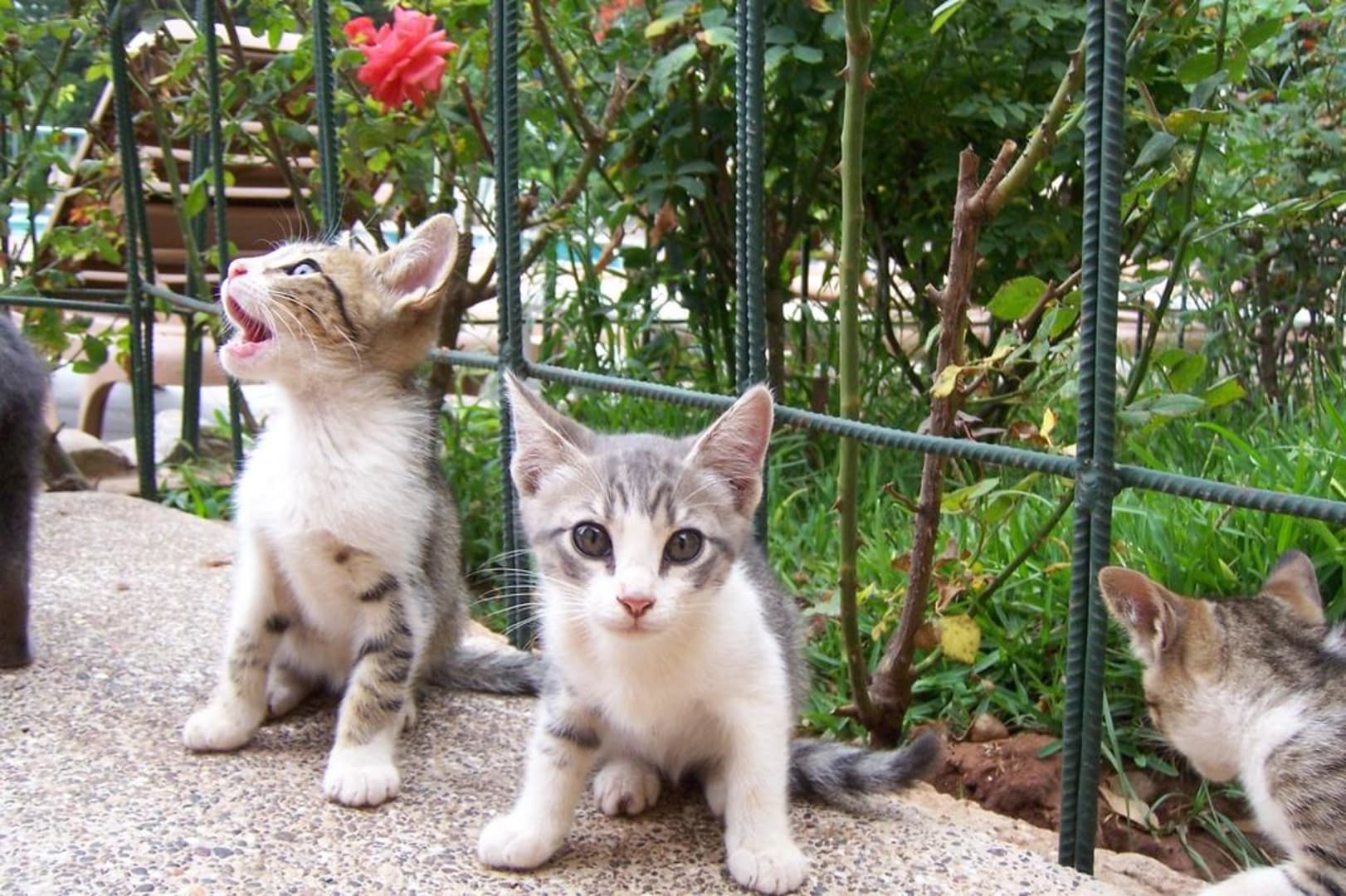 Süße Kätzchen2 von 9 jungen Katzen im Hotelgarten