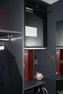 Schrank mit Safe und Kühlschrank