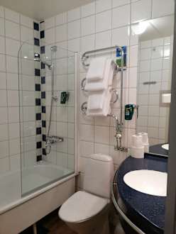 Badewanne im leichten Retrolook. Aber mir hat das Bad gefallen.