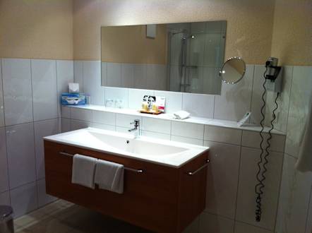Das große Waschbecken mit Spiegel
