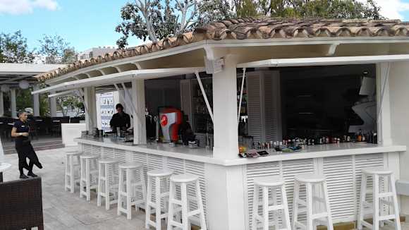 Poolbar mit Getränken und kleine Snaks