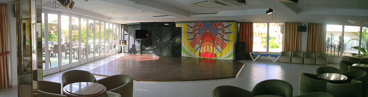 Tanzfläche und Bühne, links die Bar
