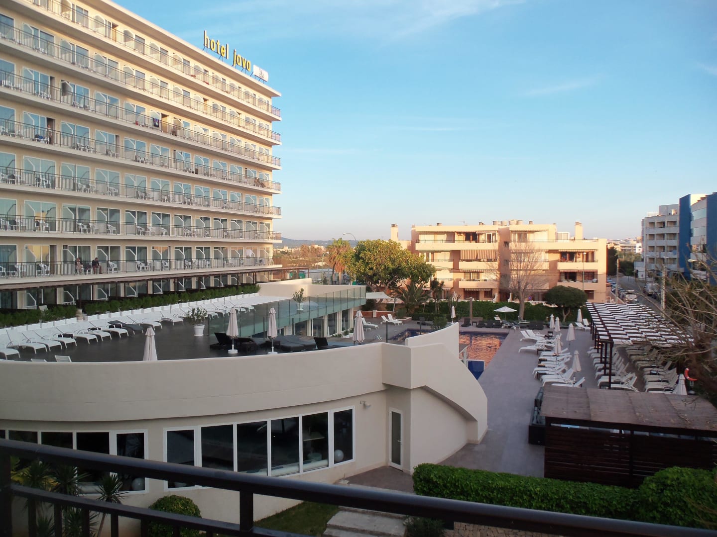 Poolblick vom Balkonleider hat man beim Blick aus einem Zimmer der 2. Etage keinen Meerblick, sondern nur auf den Poolbereich