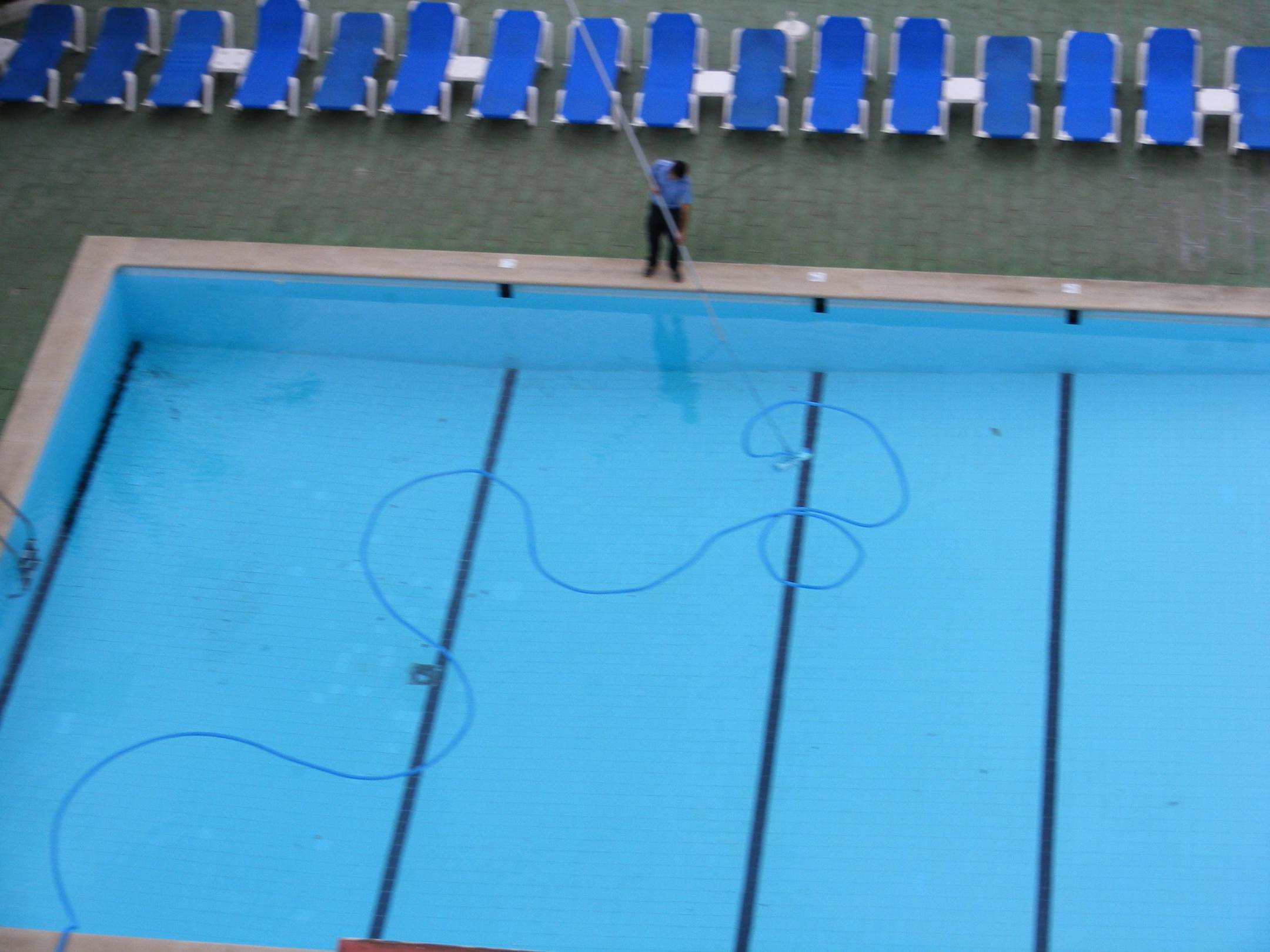 Morgendliche Poolreinigung