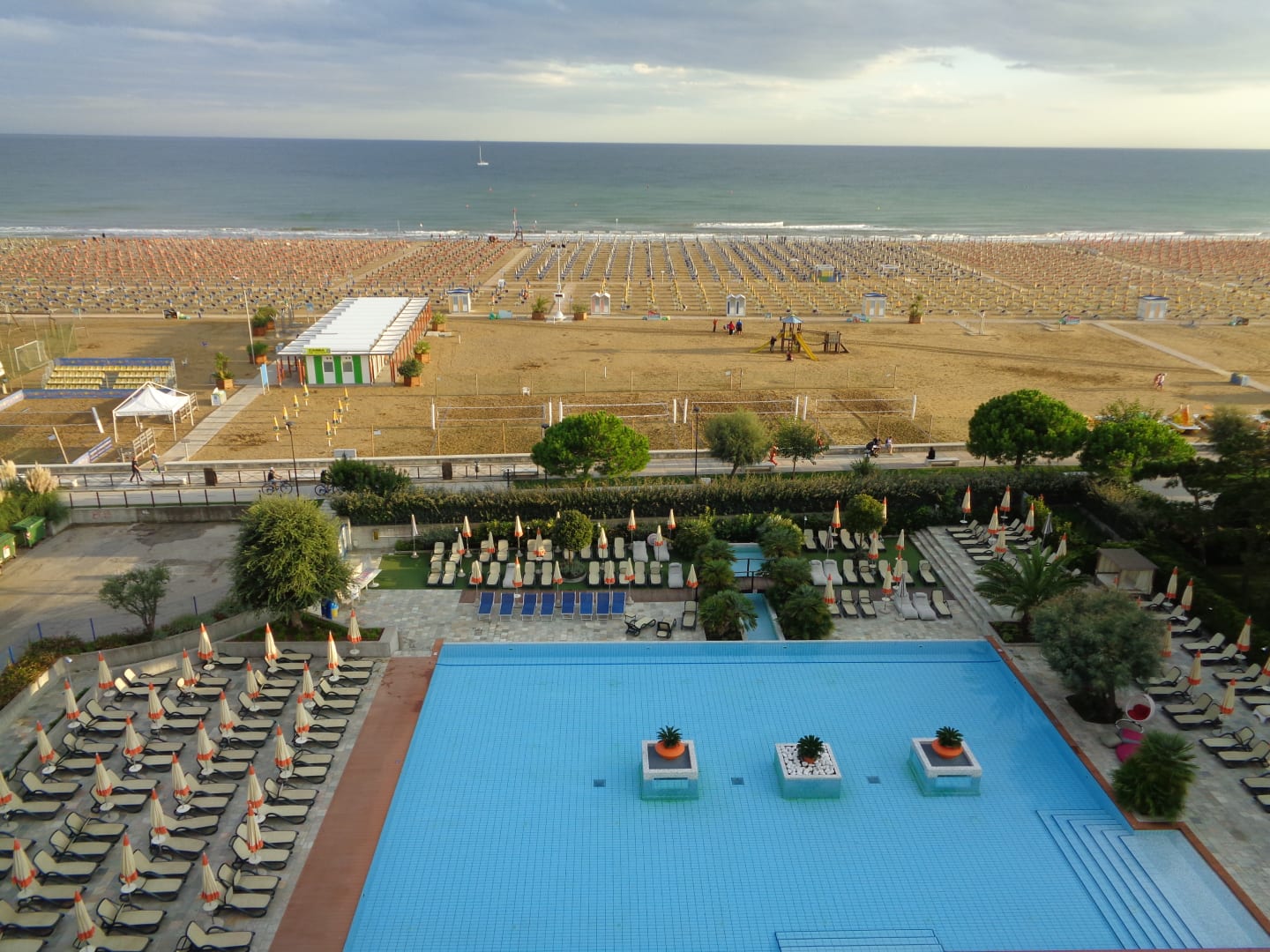 Ausblick von der Dachterasse mit Strand und Pool