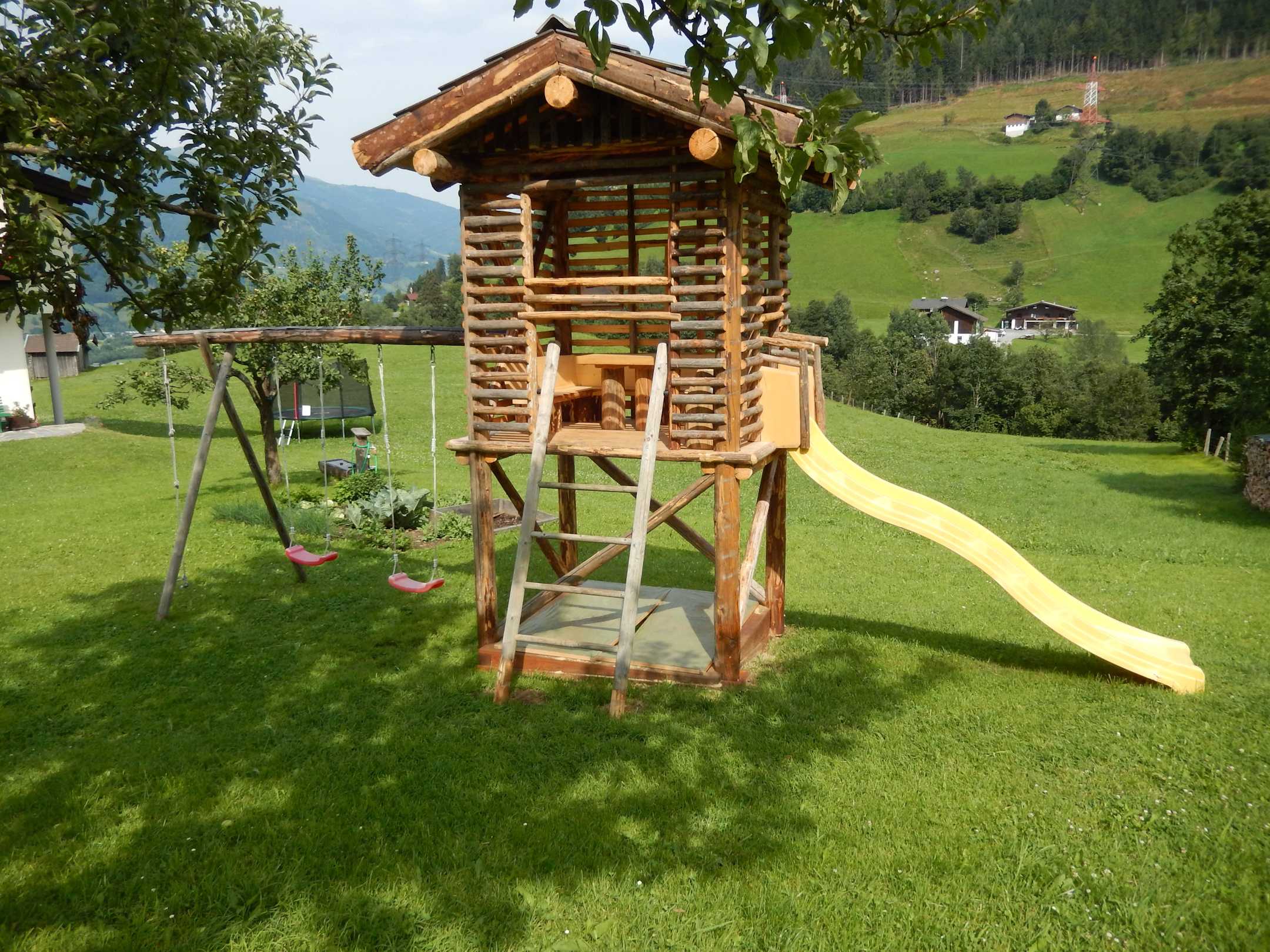 Spielplatz mit Schaukel, Rutsche und Sandkasten
