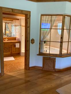 Blick vom Schlafzimmer ins Badezimmer