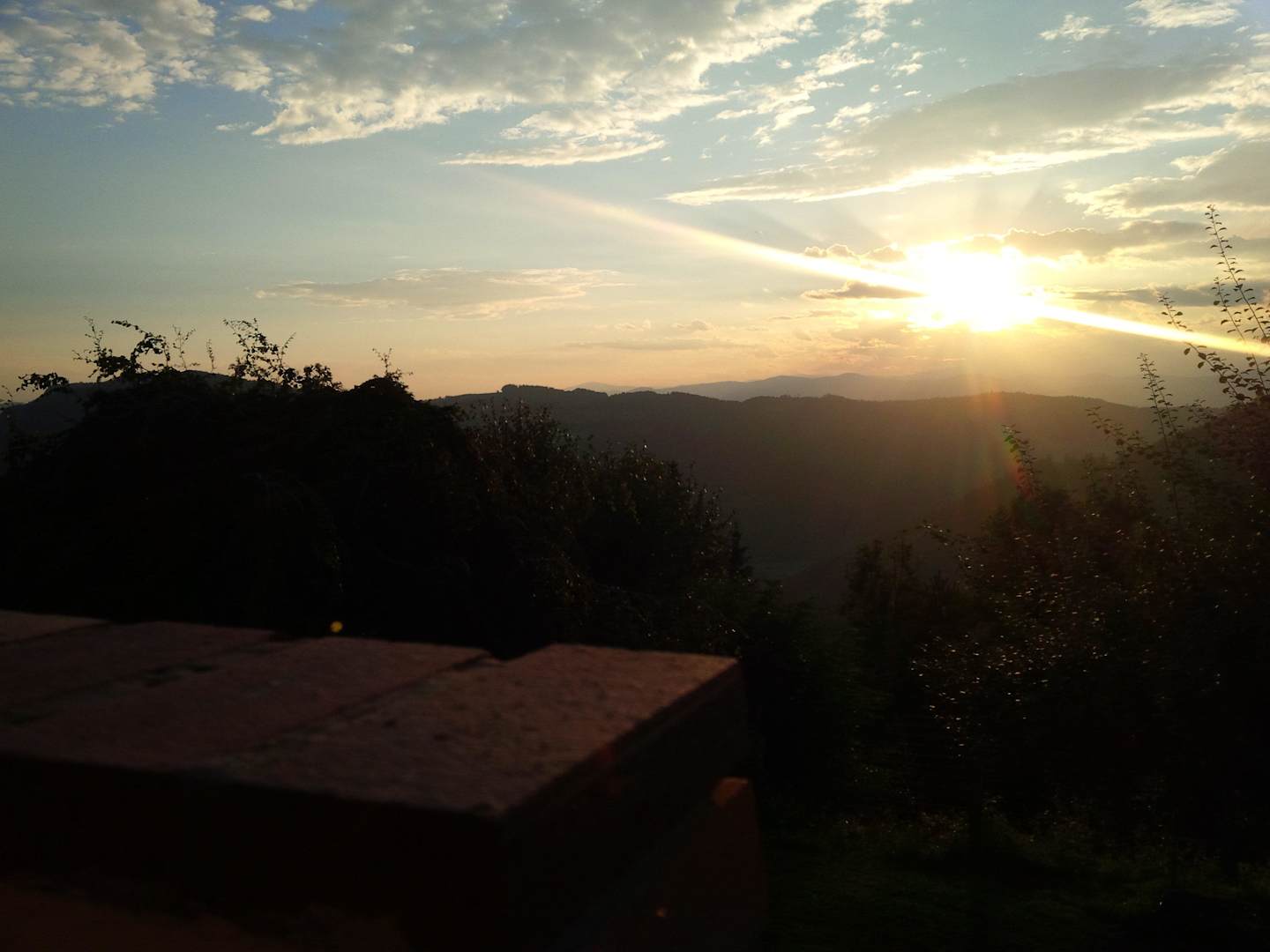 Sonnenuntergang beim Abendessen auf der Terrasse