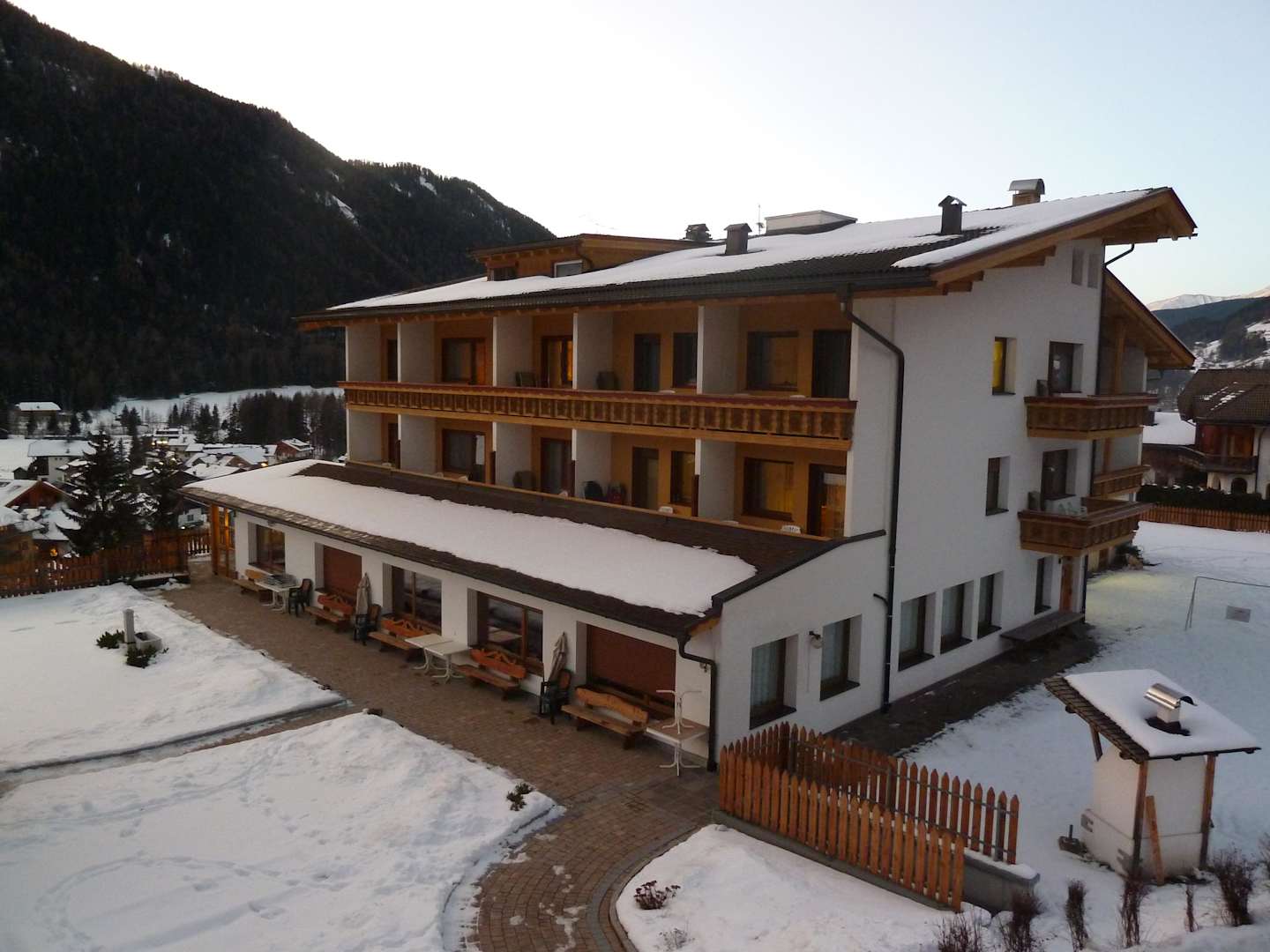 Blick vom Balkon auf das Haupthaus Biovita Hotel Alpi